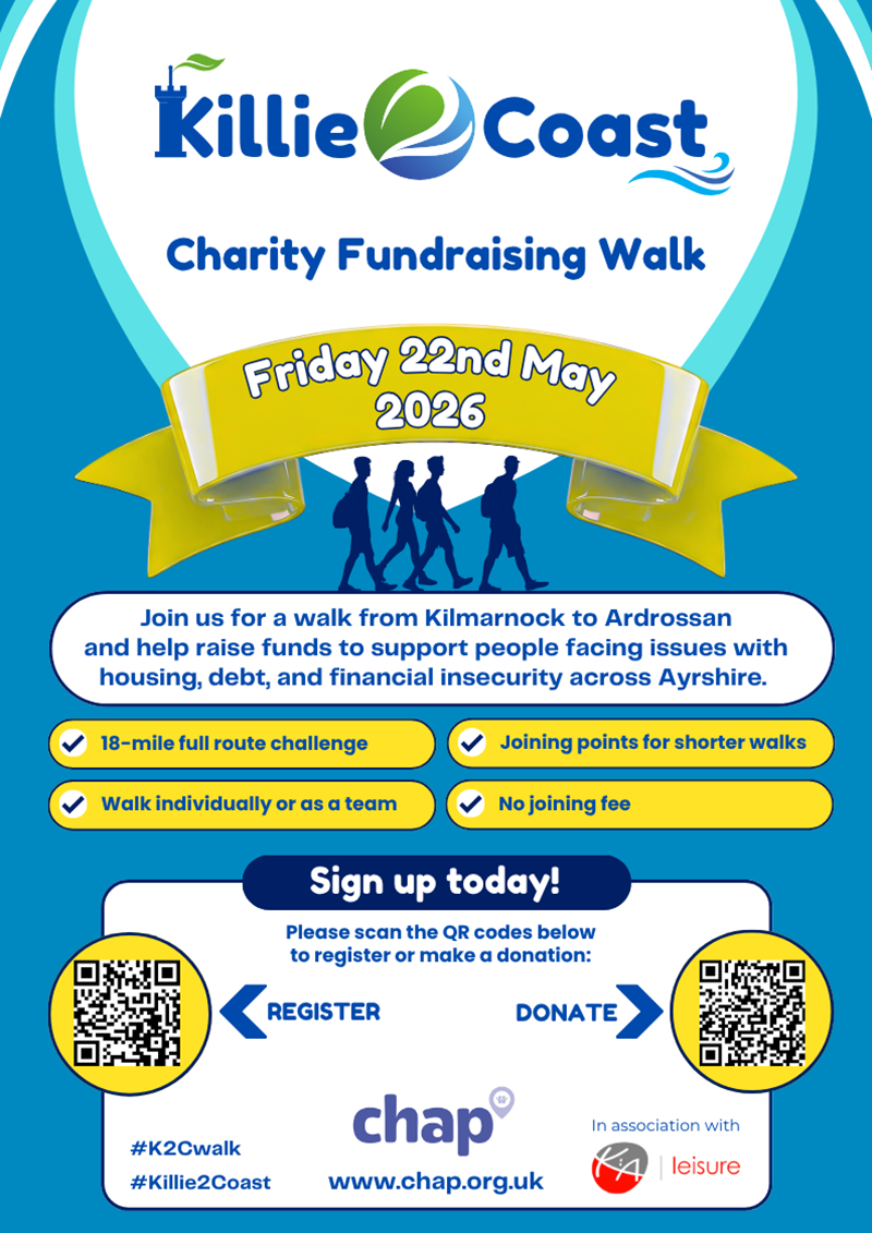 Every step taken helps raise vital funds for CHAP’s services, supporting people across Ayrshire who are facing housing issues, debt and financial hardship.